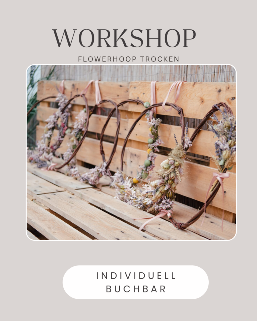 Wir fertigen einen Hoop aus Trockenblumen für die Türe oder das Fenster.