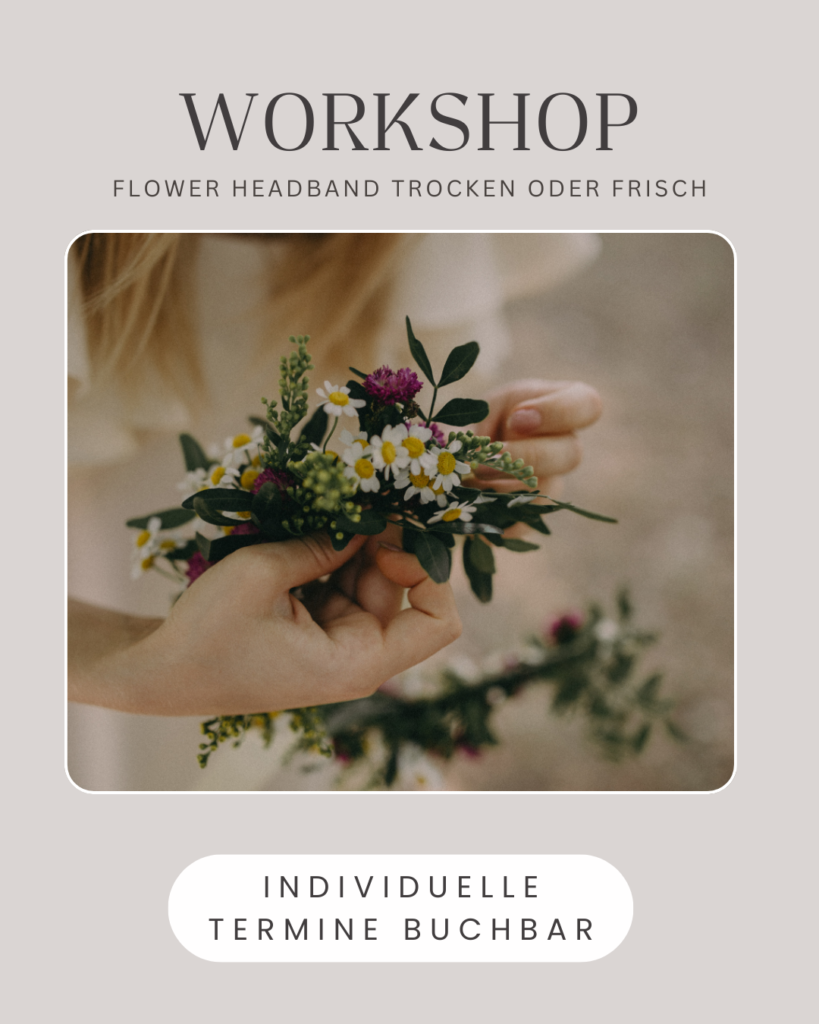 Wir binden einen Blumenhaarreif aus Trockenblumen oder frischen Blüten.
