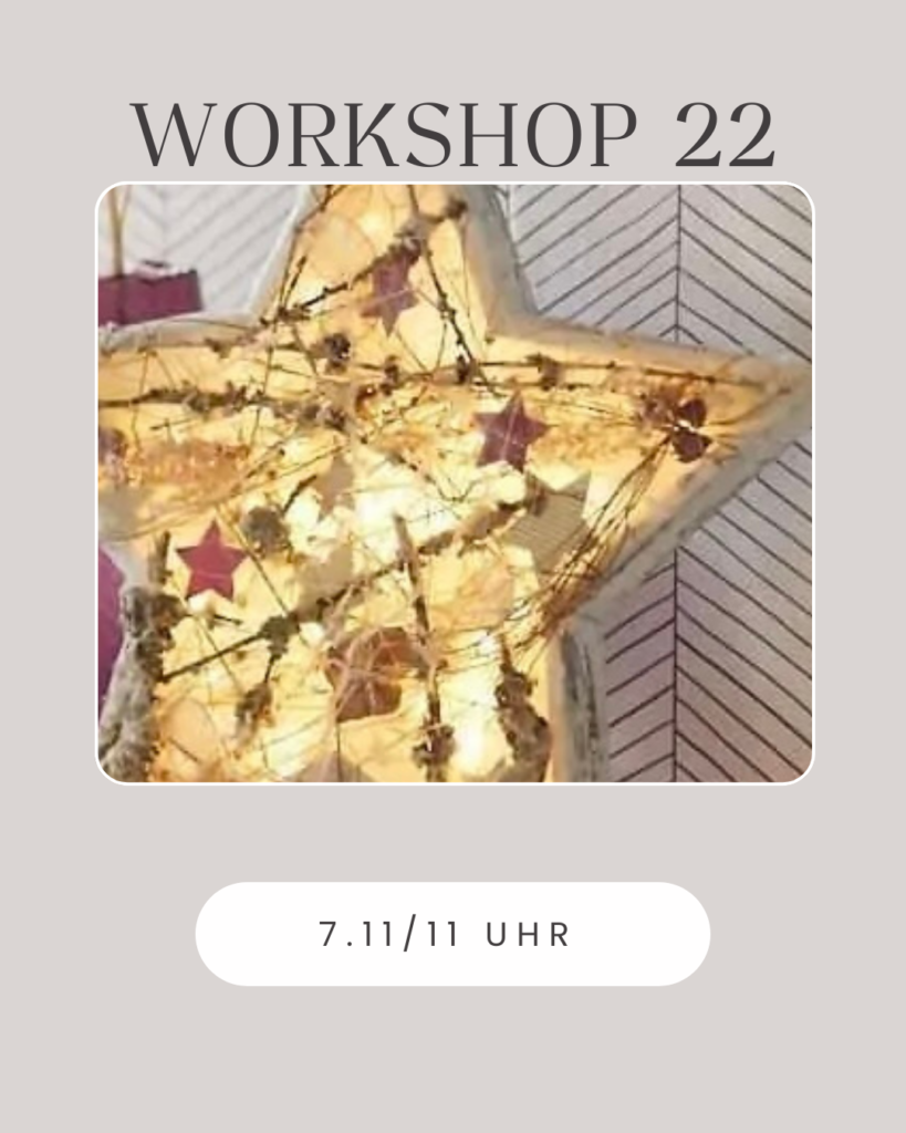 Wir füllen einen Holzstern und dekorieren ihn mit verschiedenen. Materialien und Lichterkette.